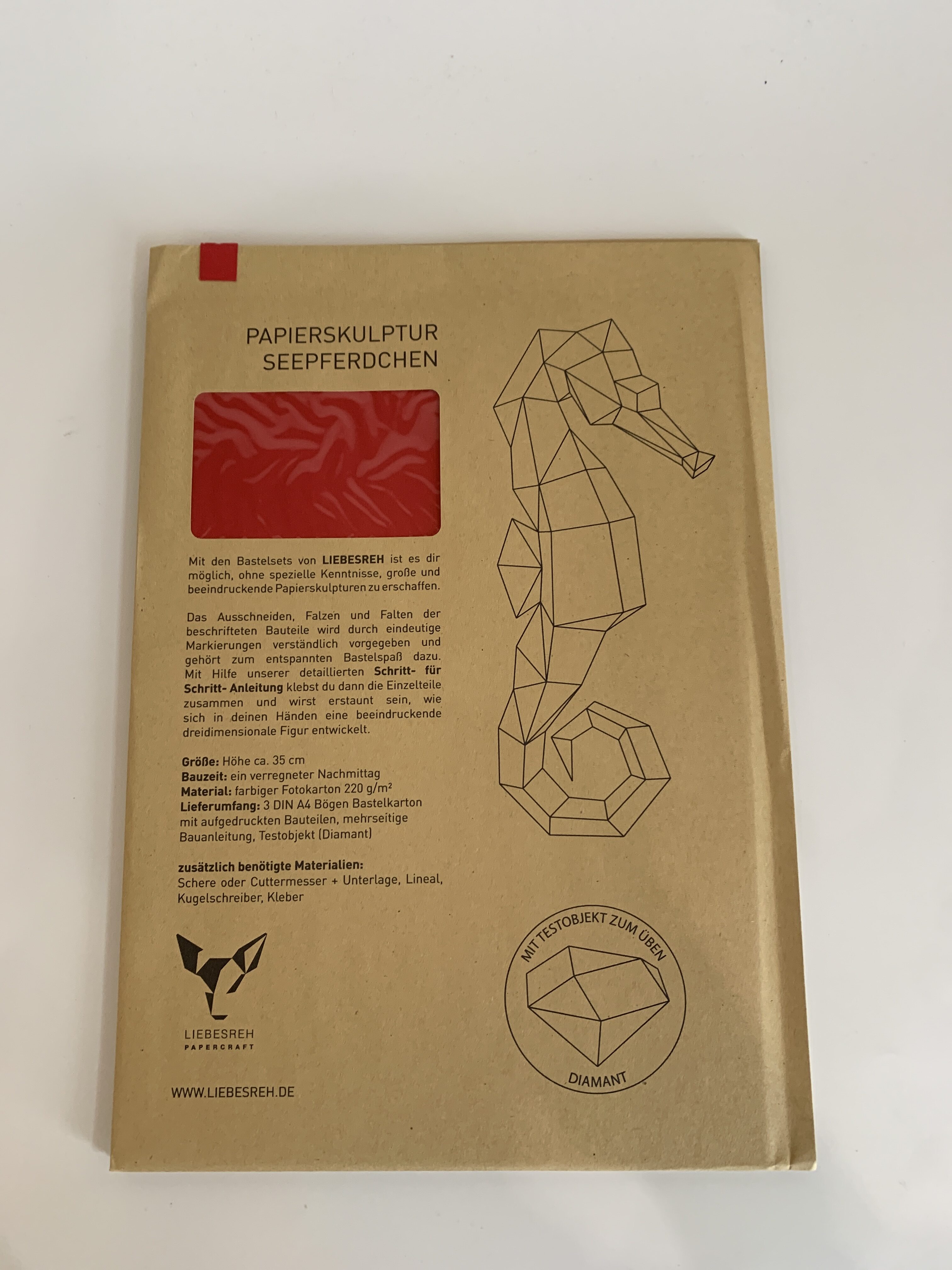 Papierskulptur Seepferdchen rot