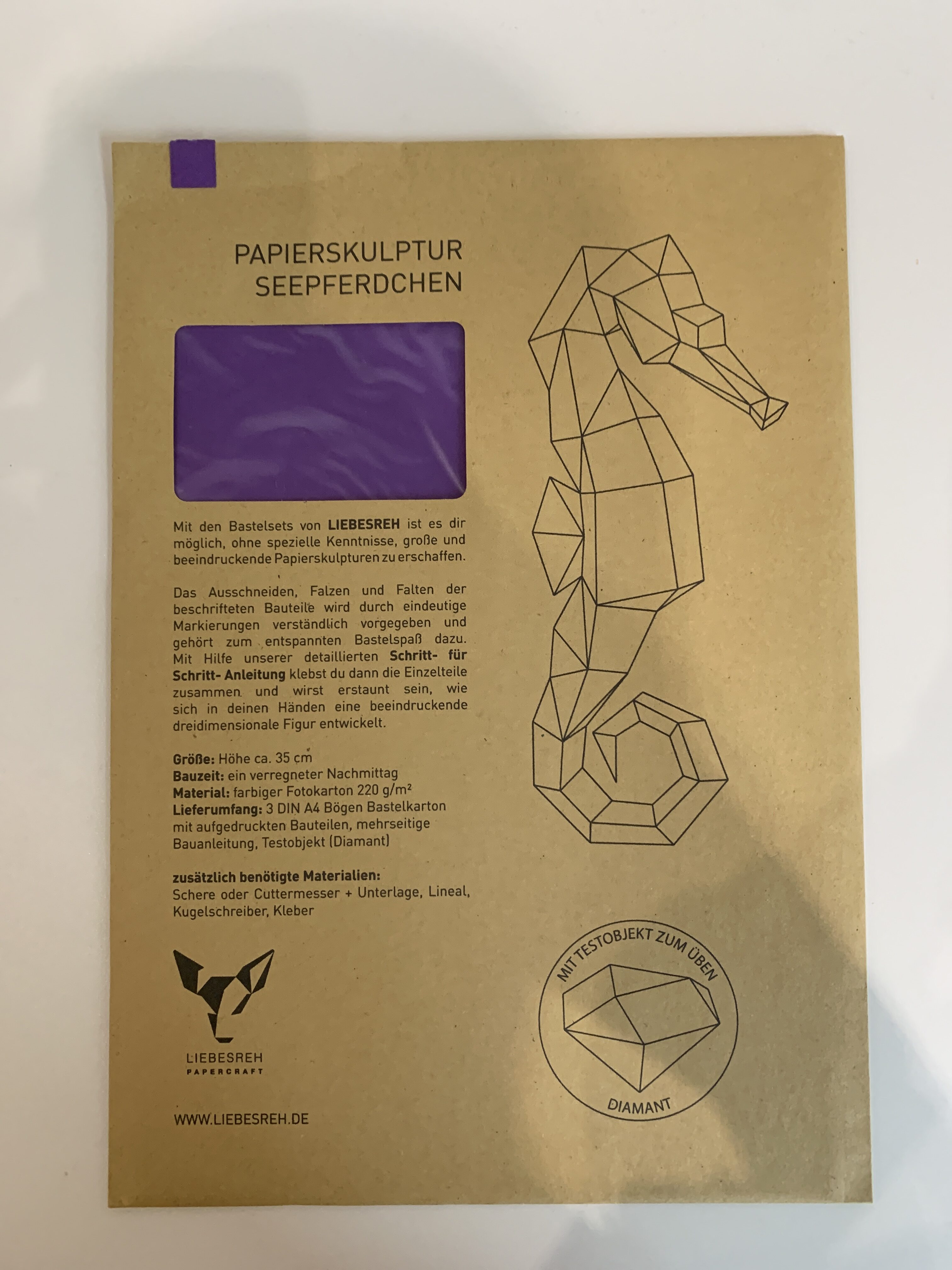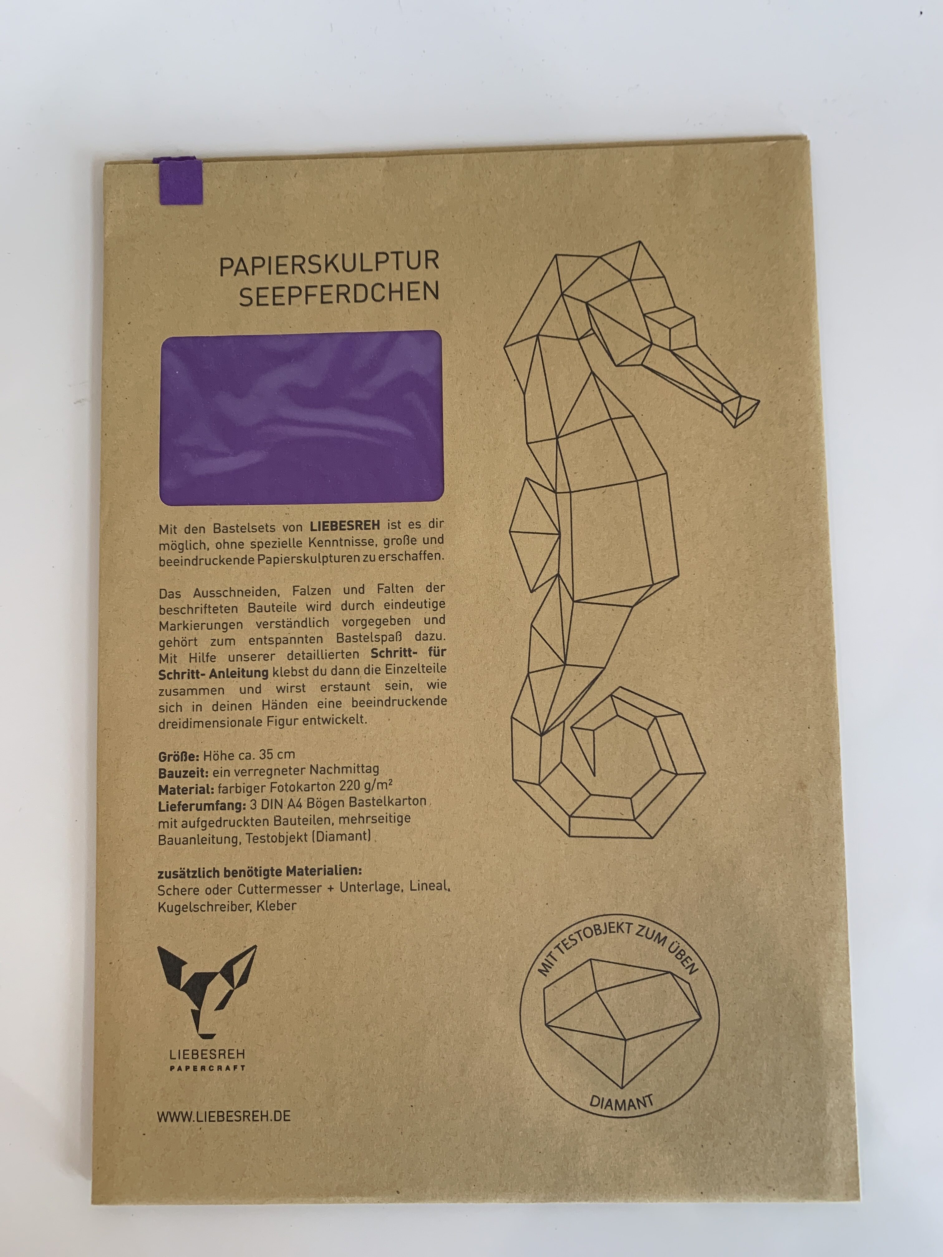 Papierskulptur Seepferdchen Lila