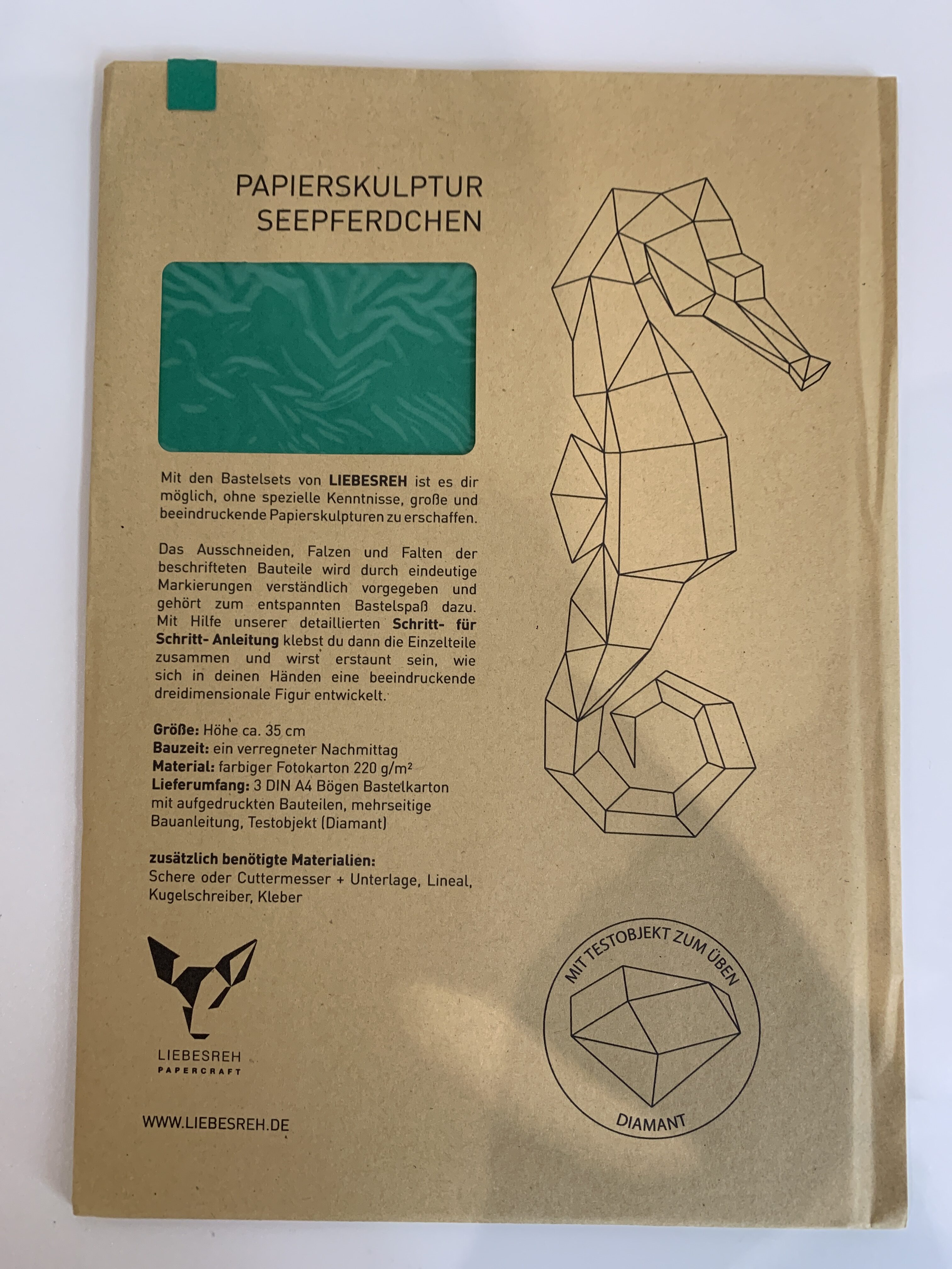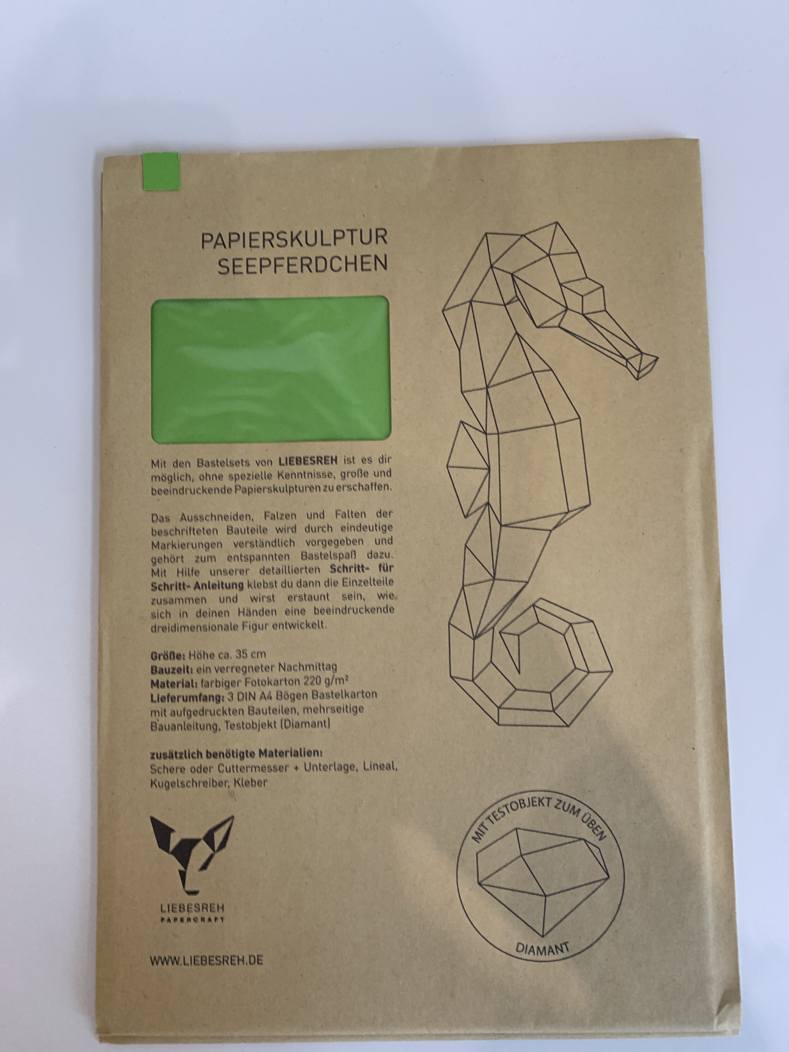 Papierskulptur Seepferdchen grün