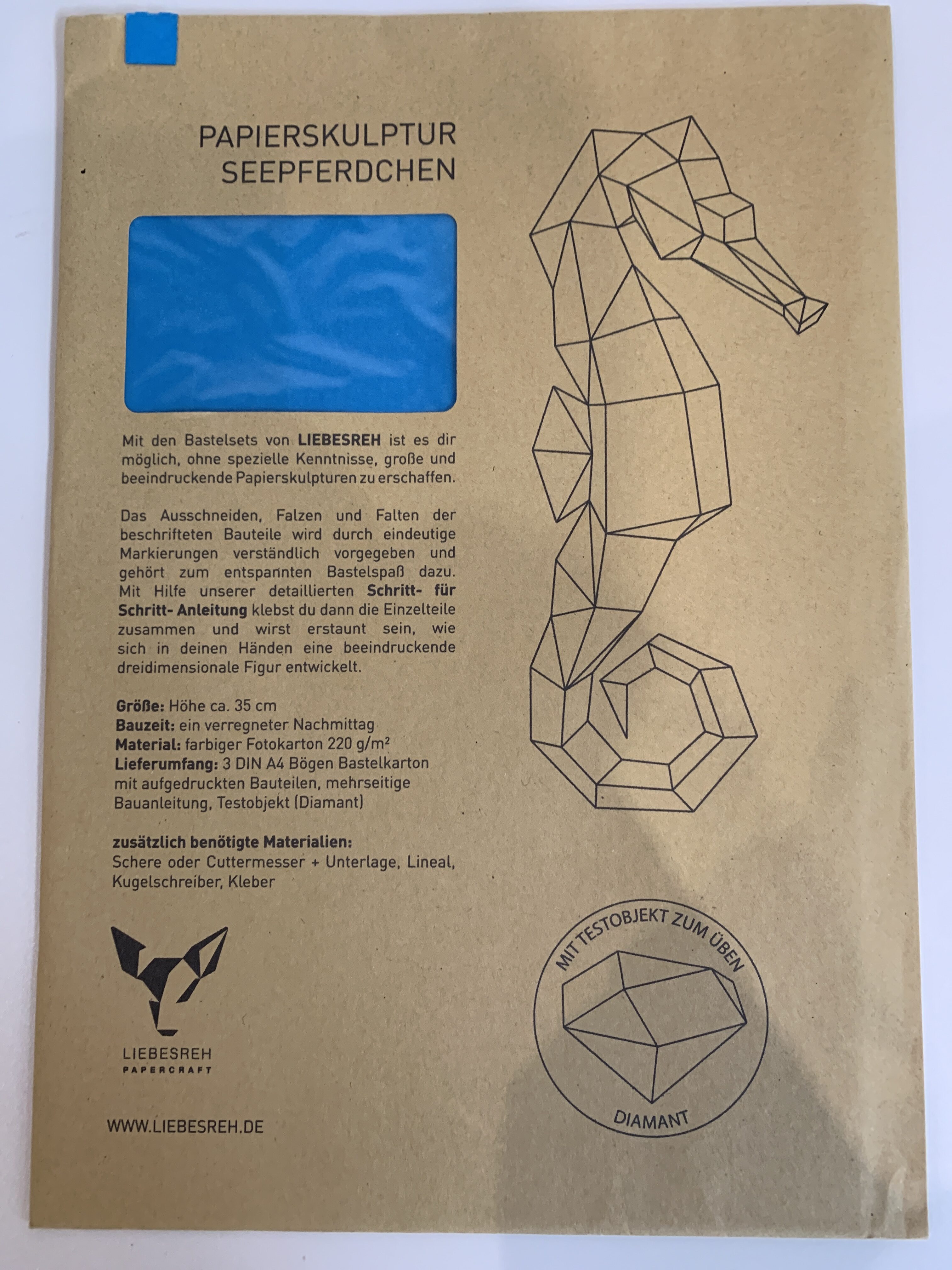 Papierskulptur Seepferdchen blau