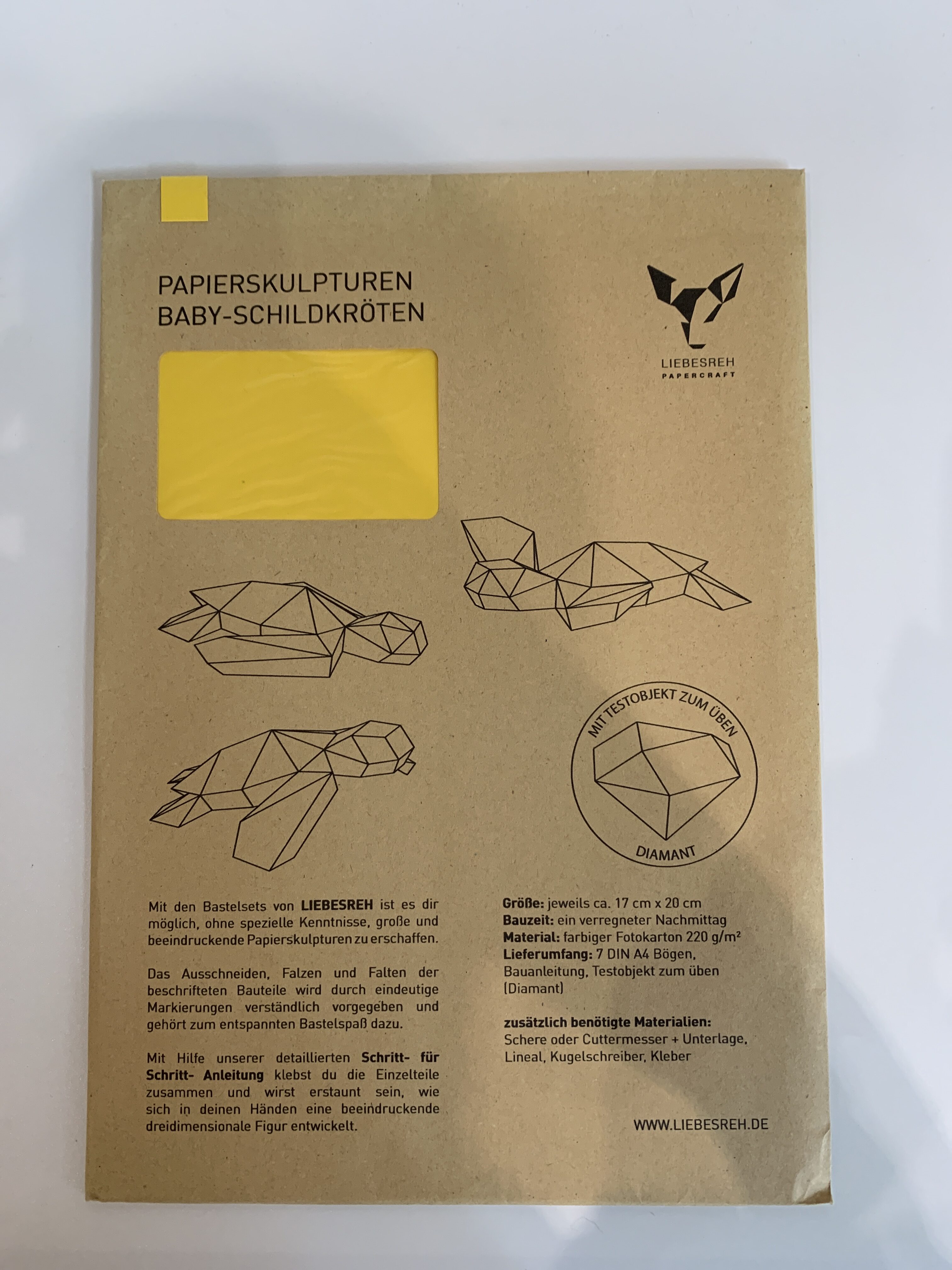 Papierskulptur Babyschildkröten gelb