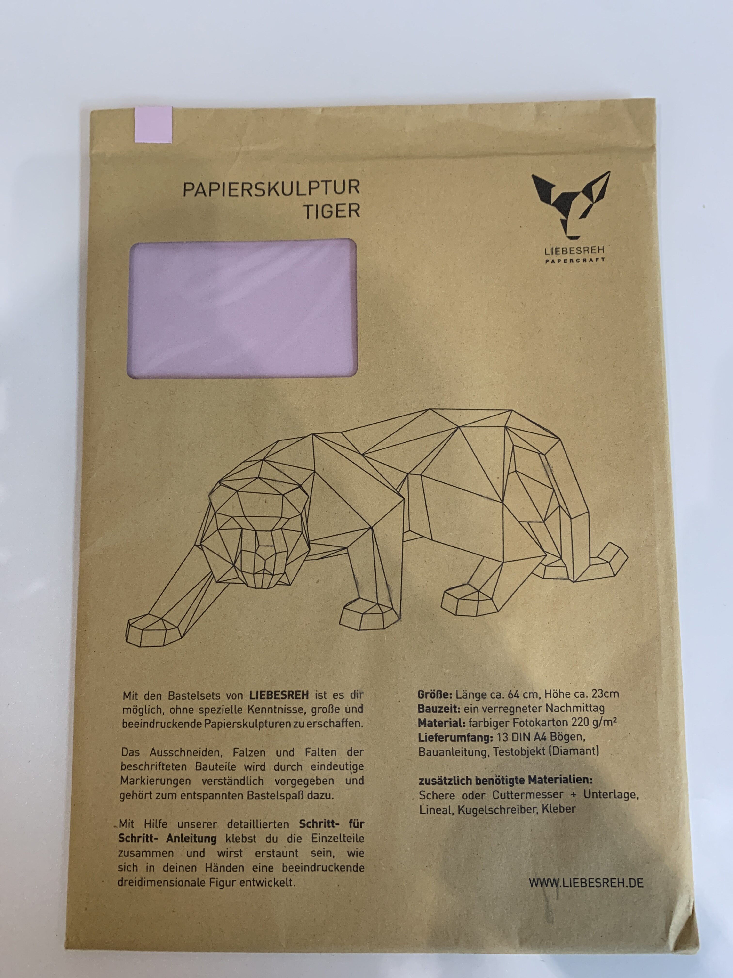 Papierskulptur Tiger flieder