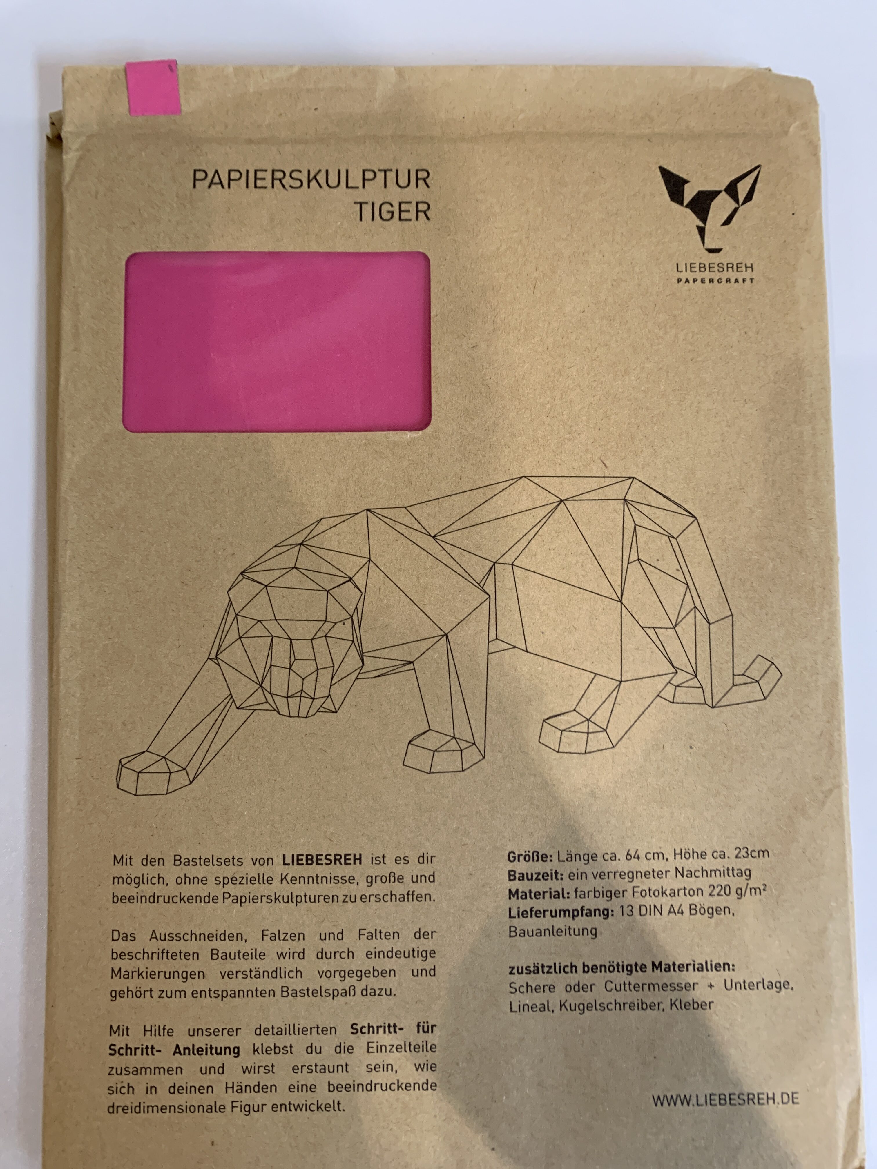 Papierskulptur Tiger pink
