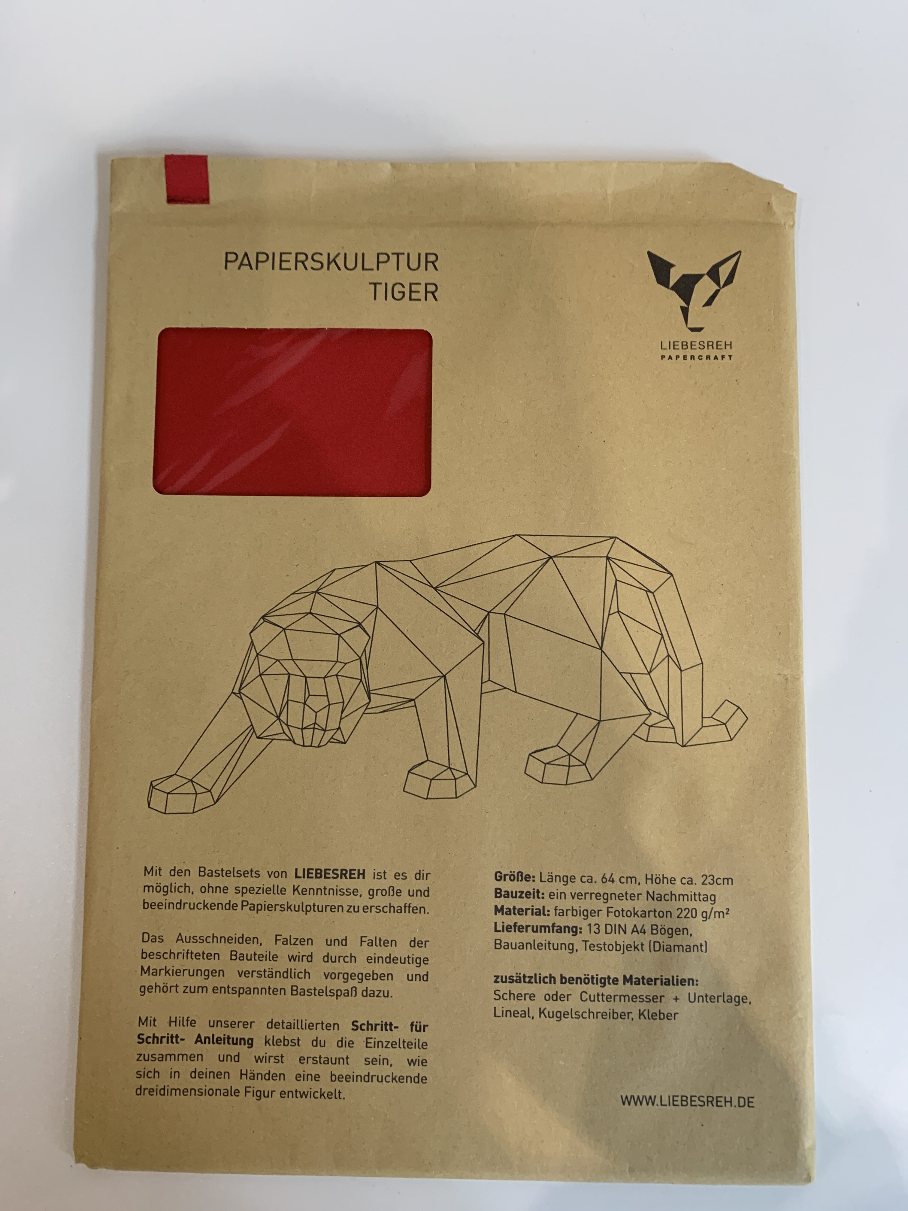 Papierskulptur Tiger rot
