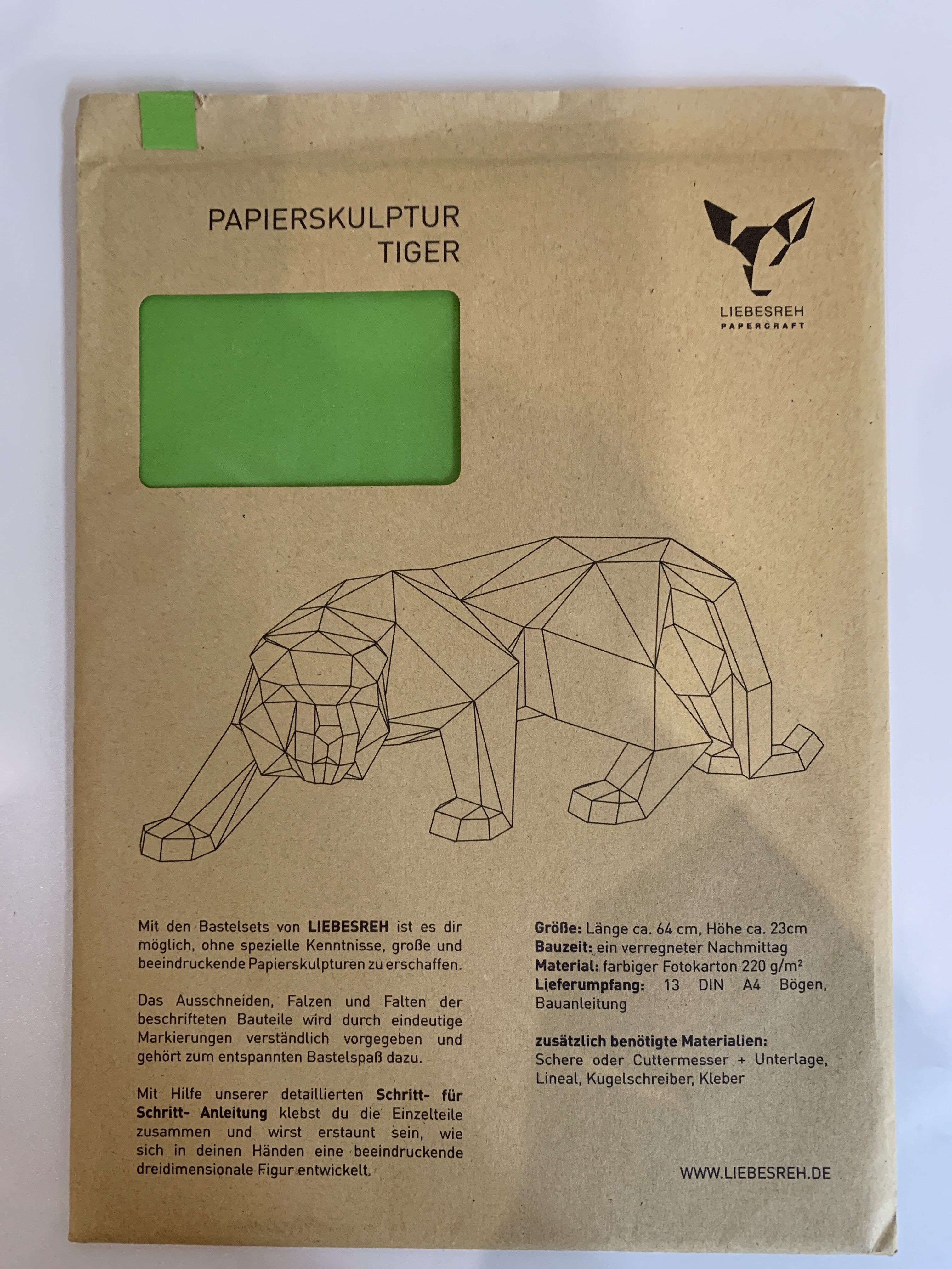 Papierskulptur Tiger hellgrün