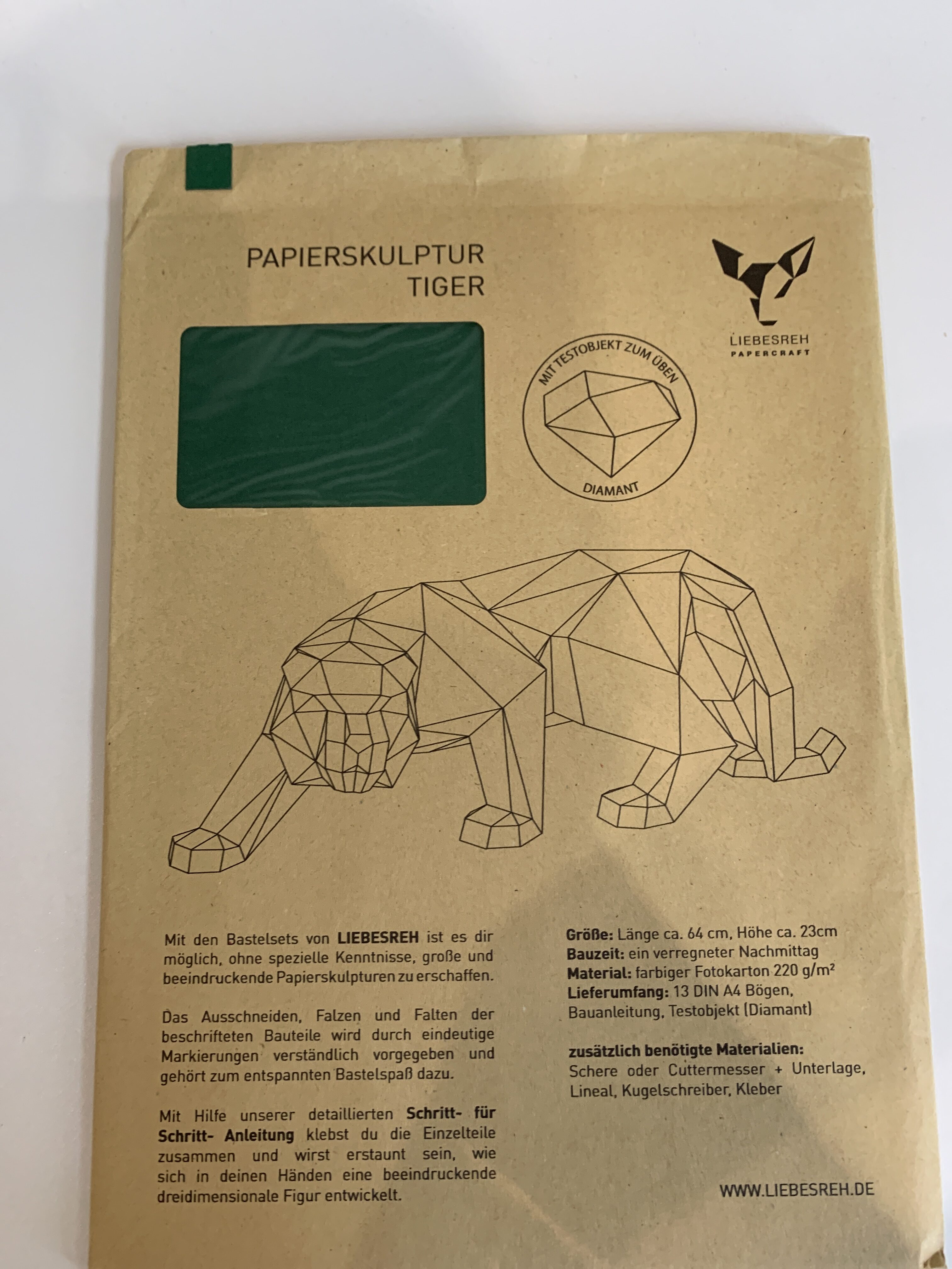 Papierskulptur Tiger dunkelgrün
