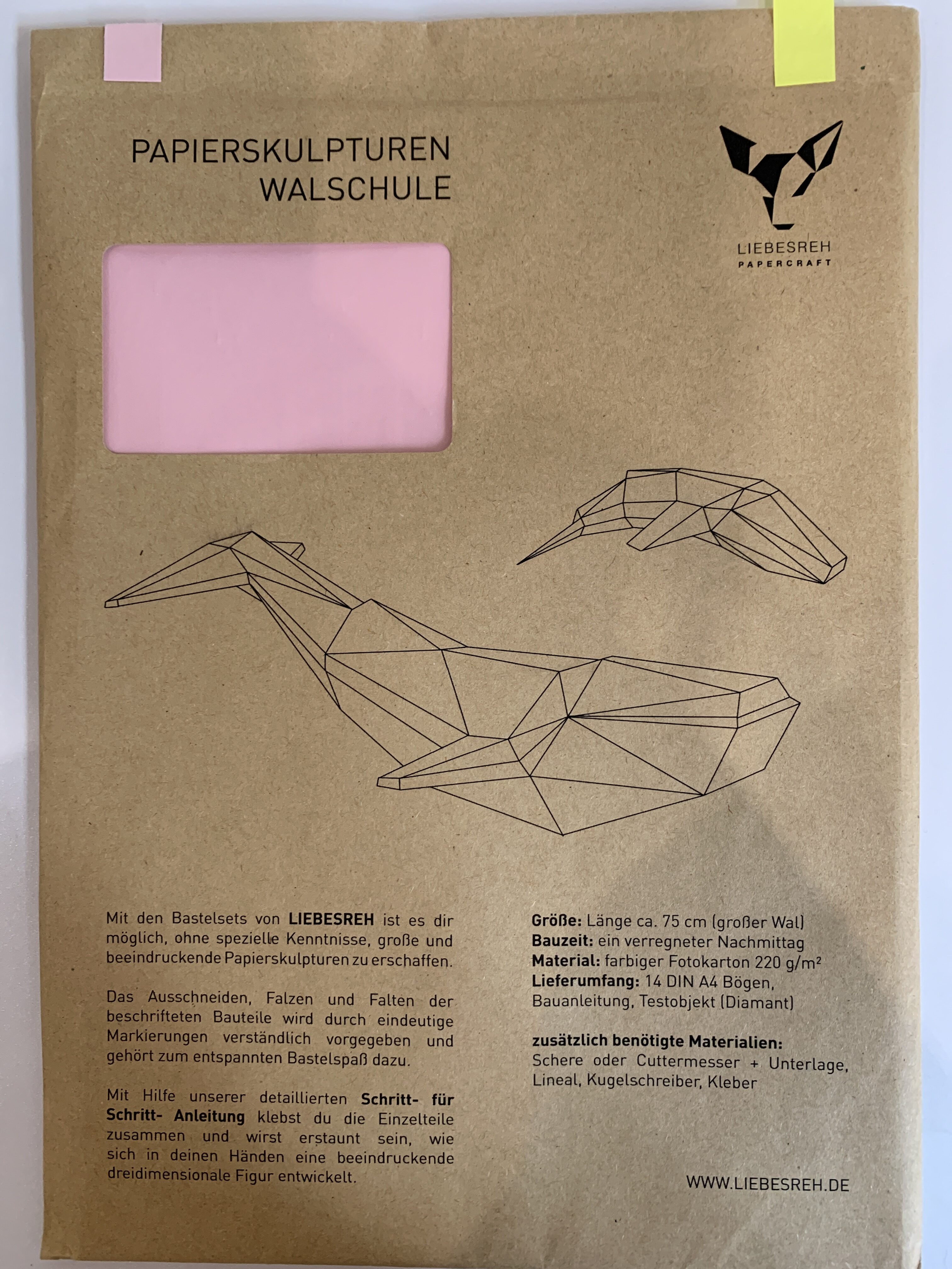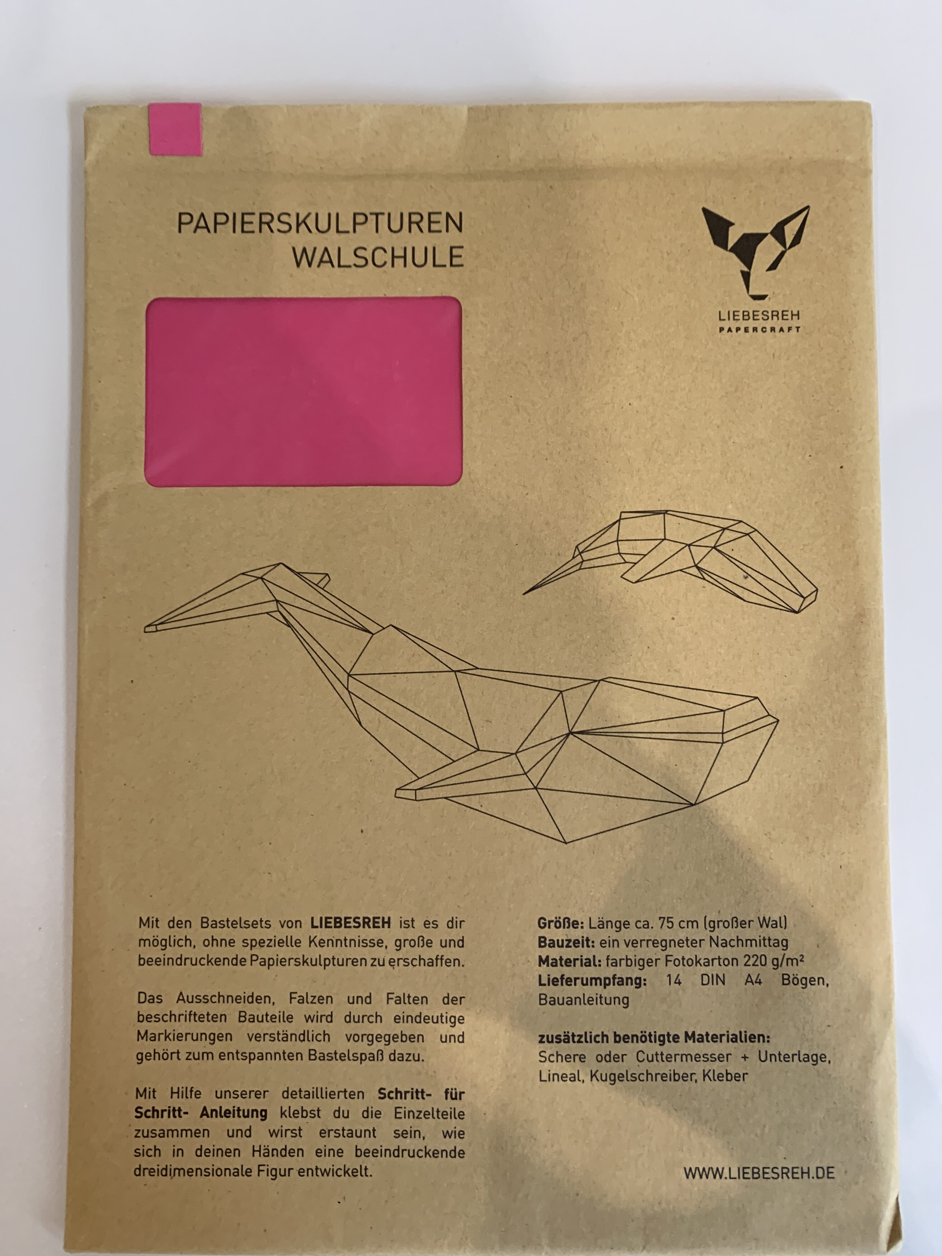 Papierskulptur Walschule rosa
