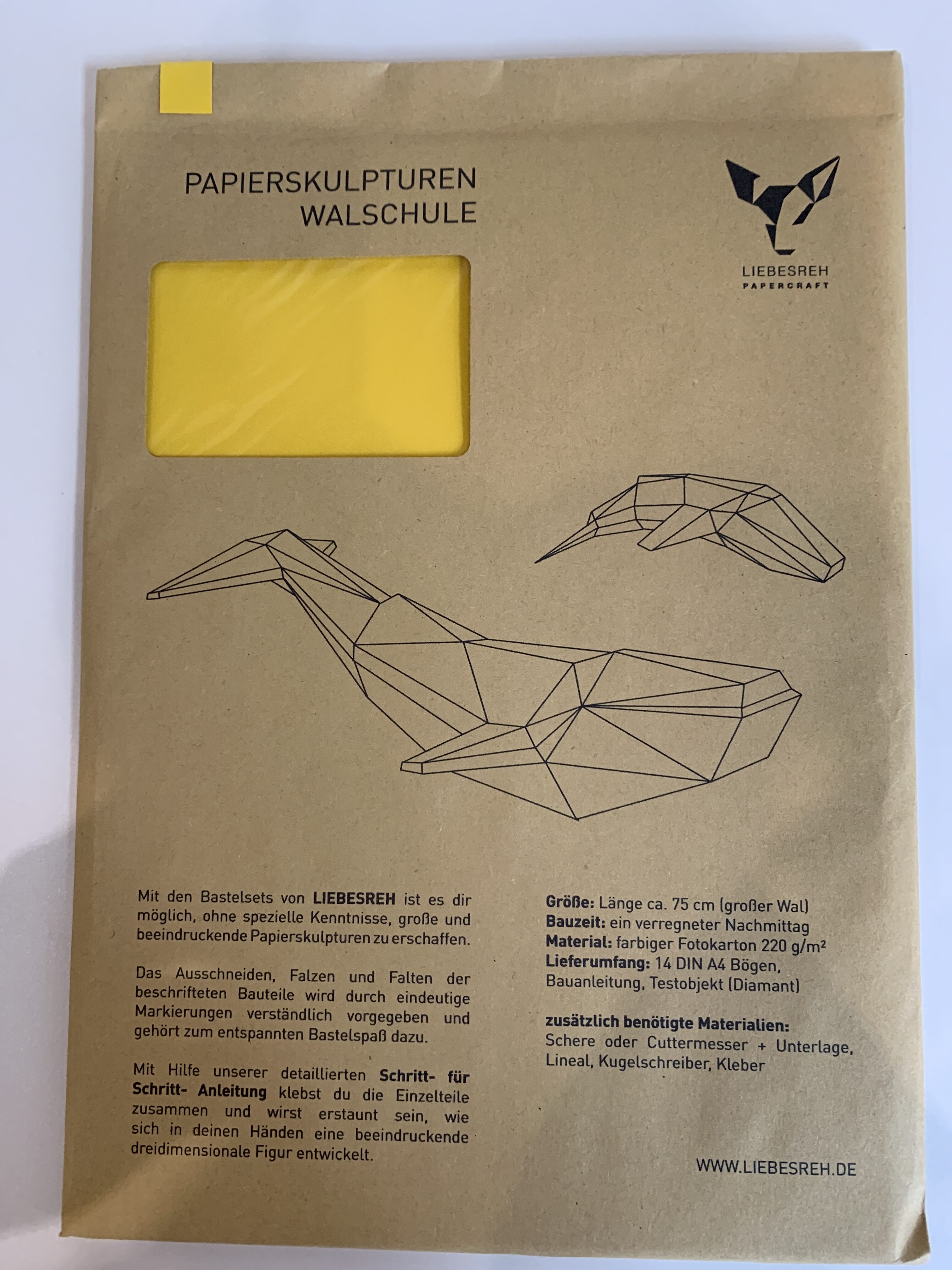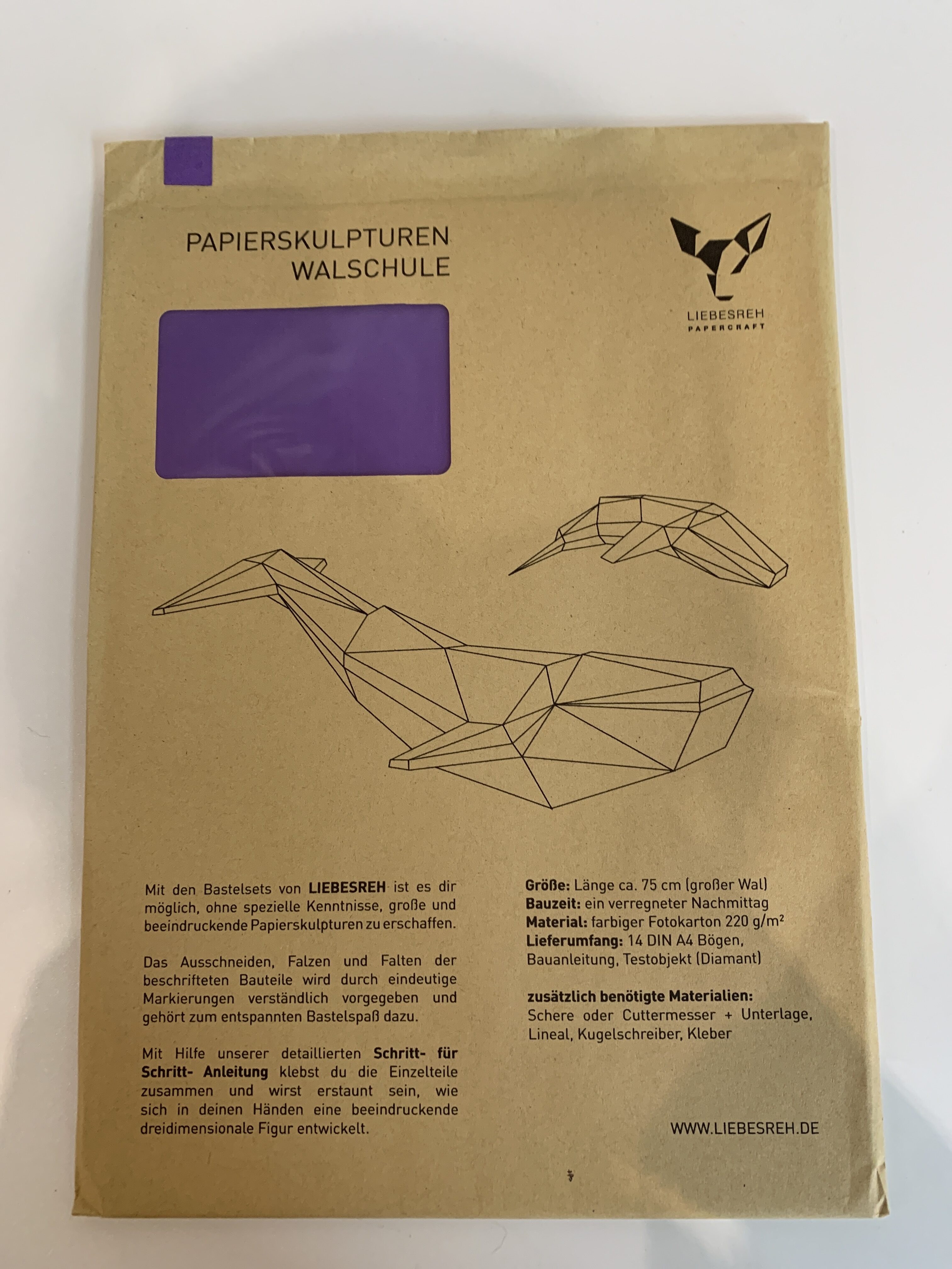 Papierskulptur Walschule lila