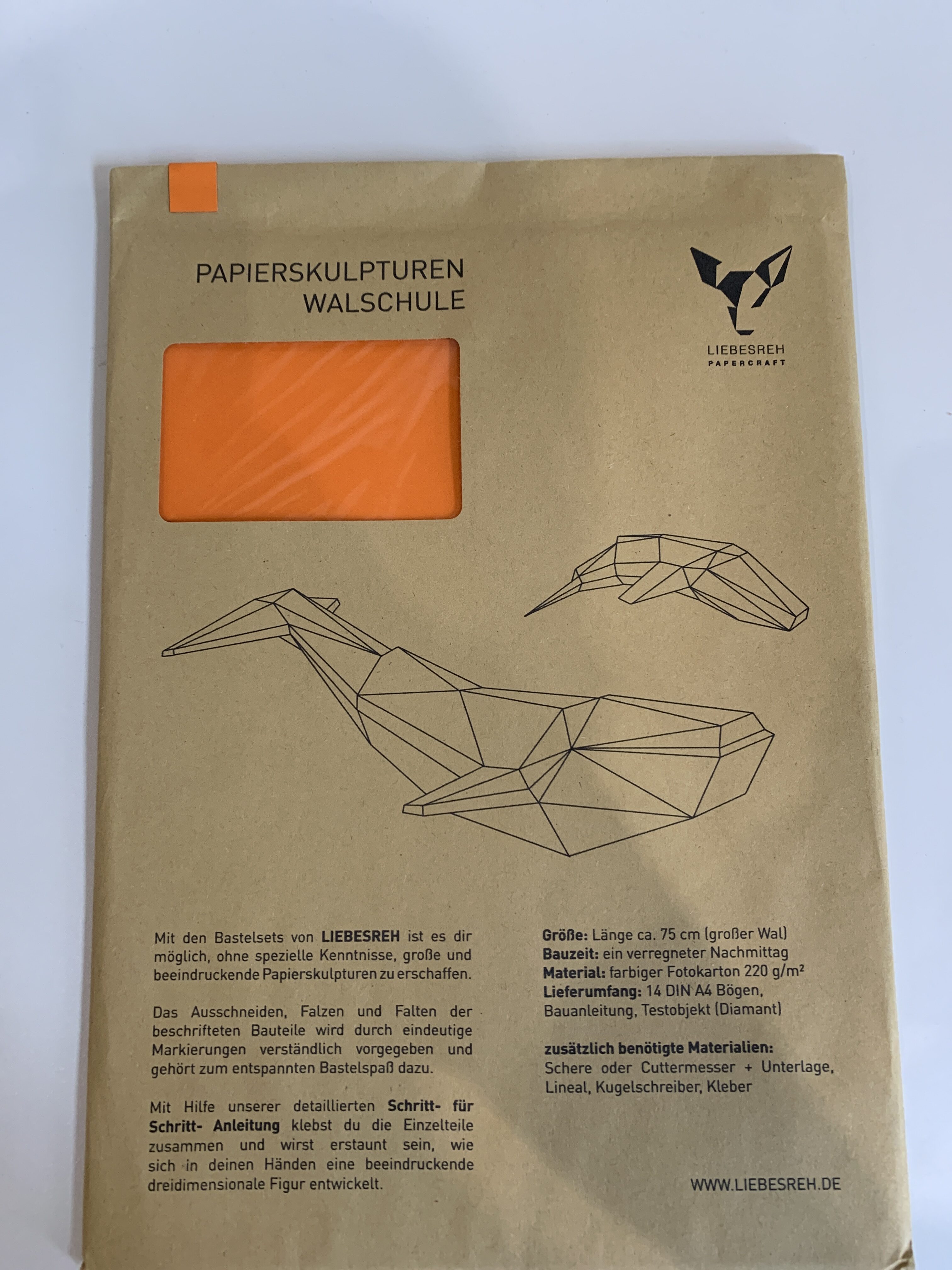 Papierskulptur Walschule orange