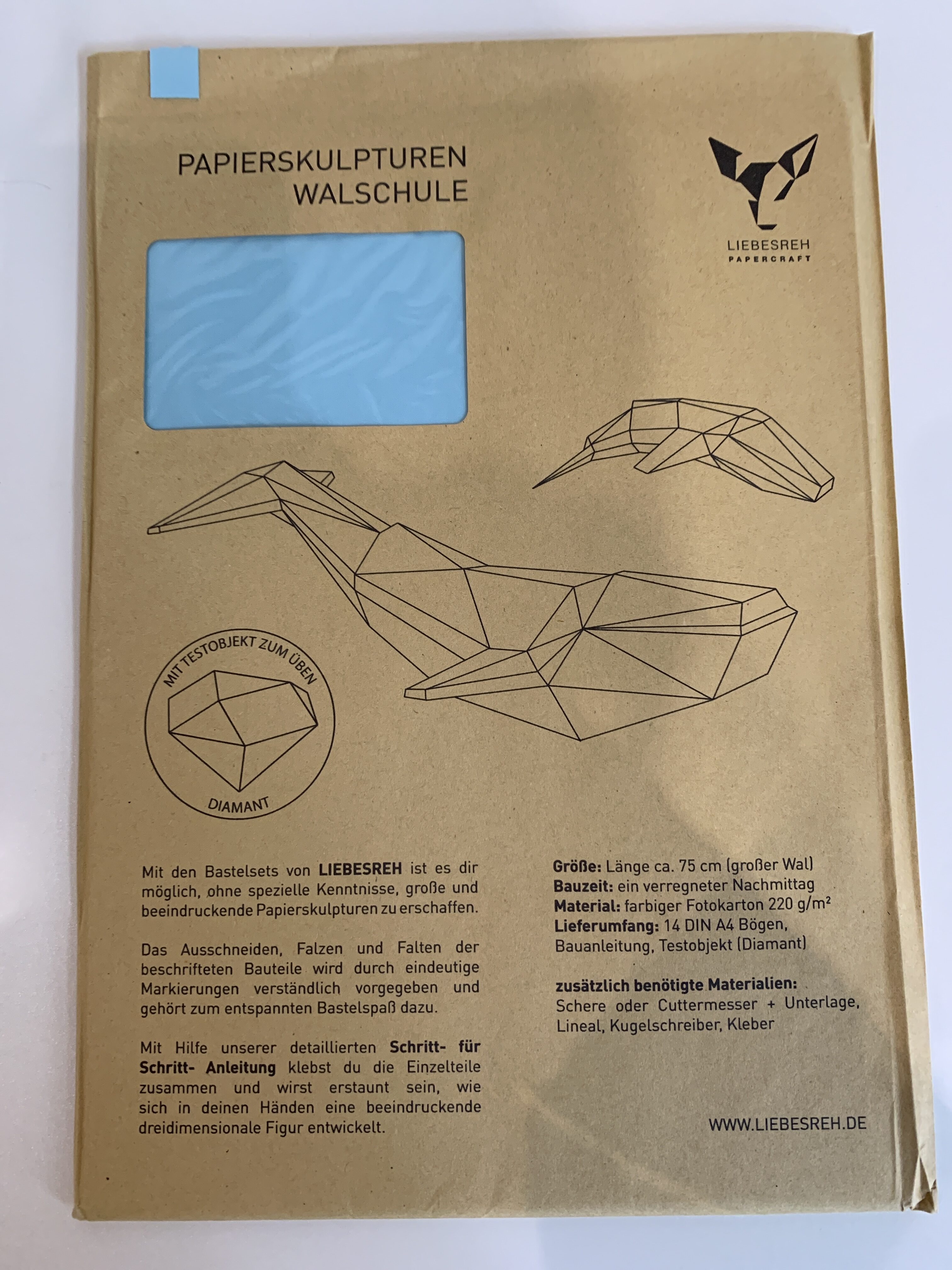 Papierskulptur Walschule hellblau