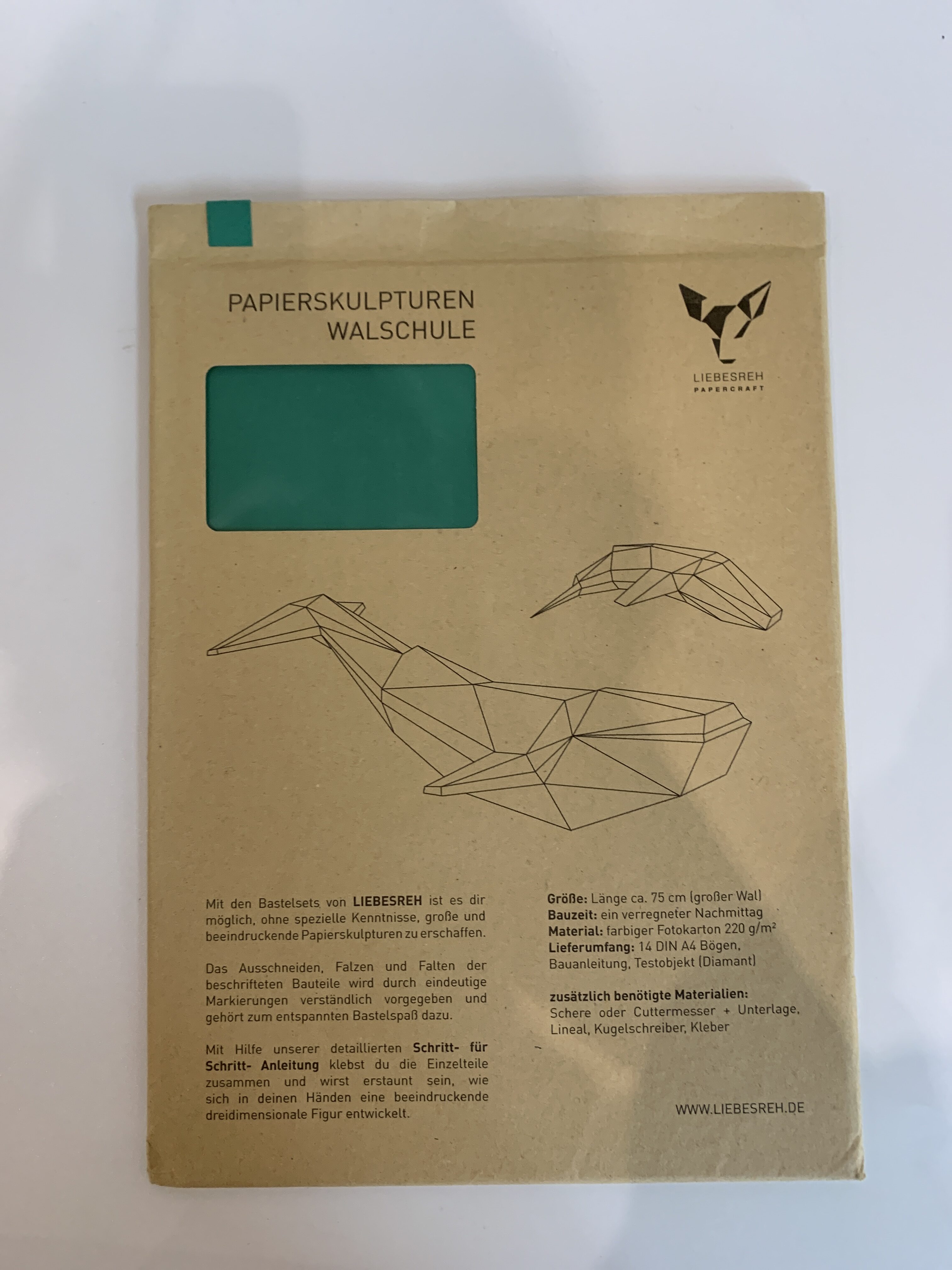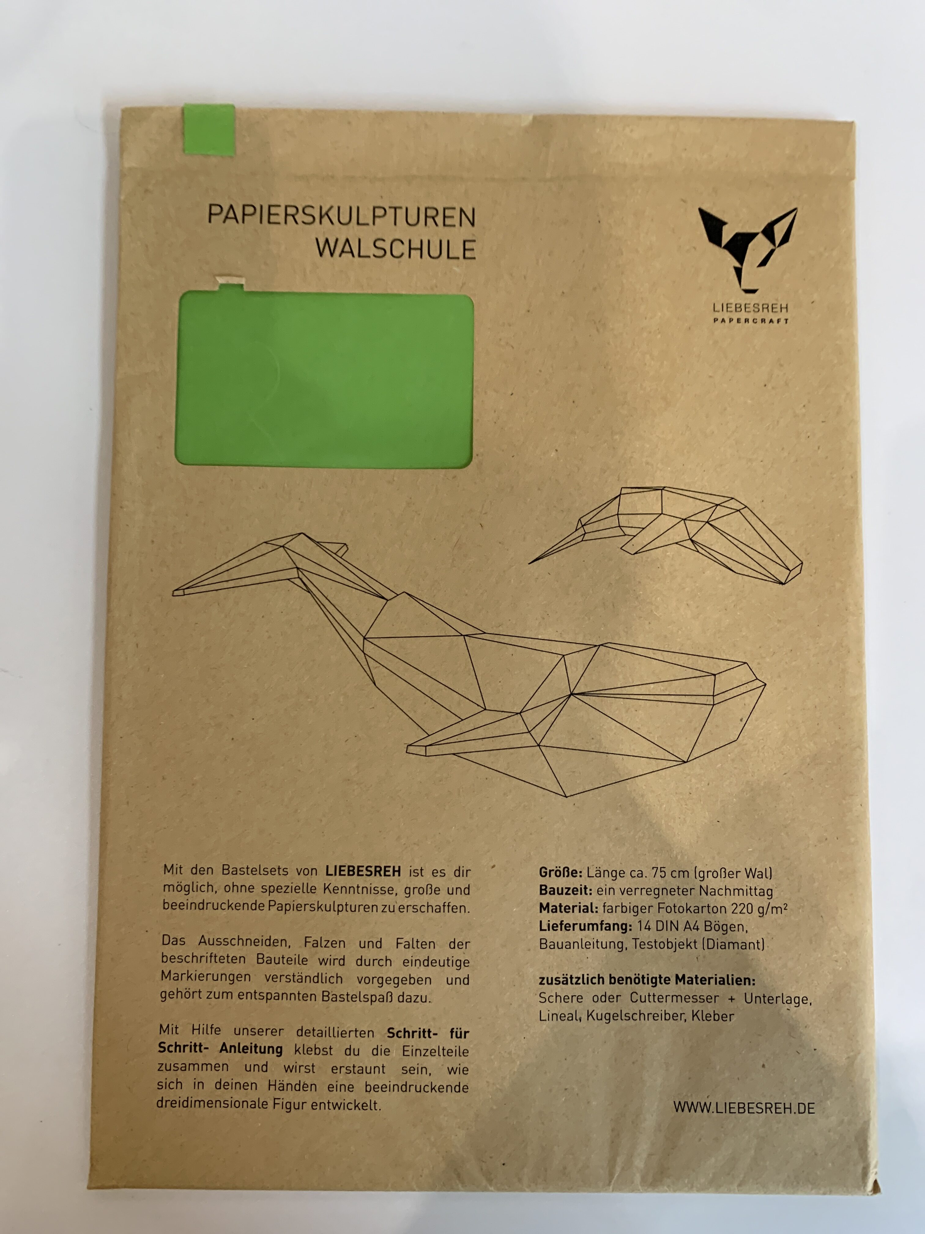 Papierskulptur Walschule dunkelgrün