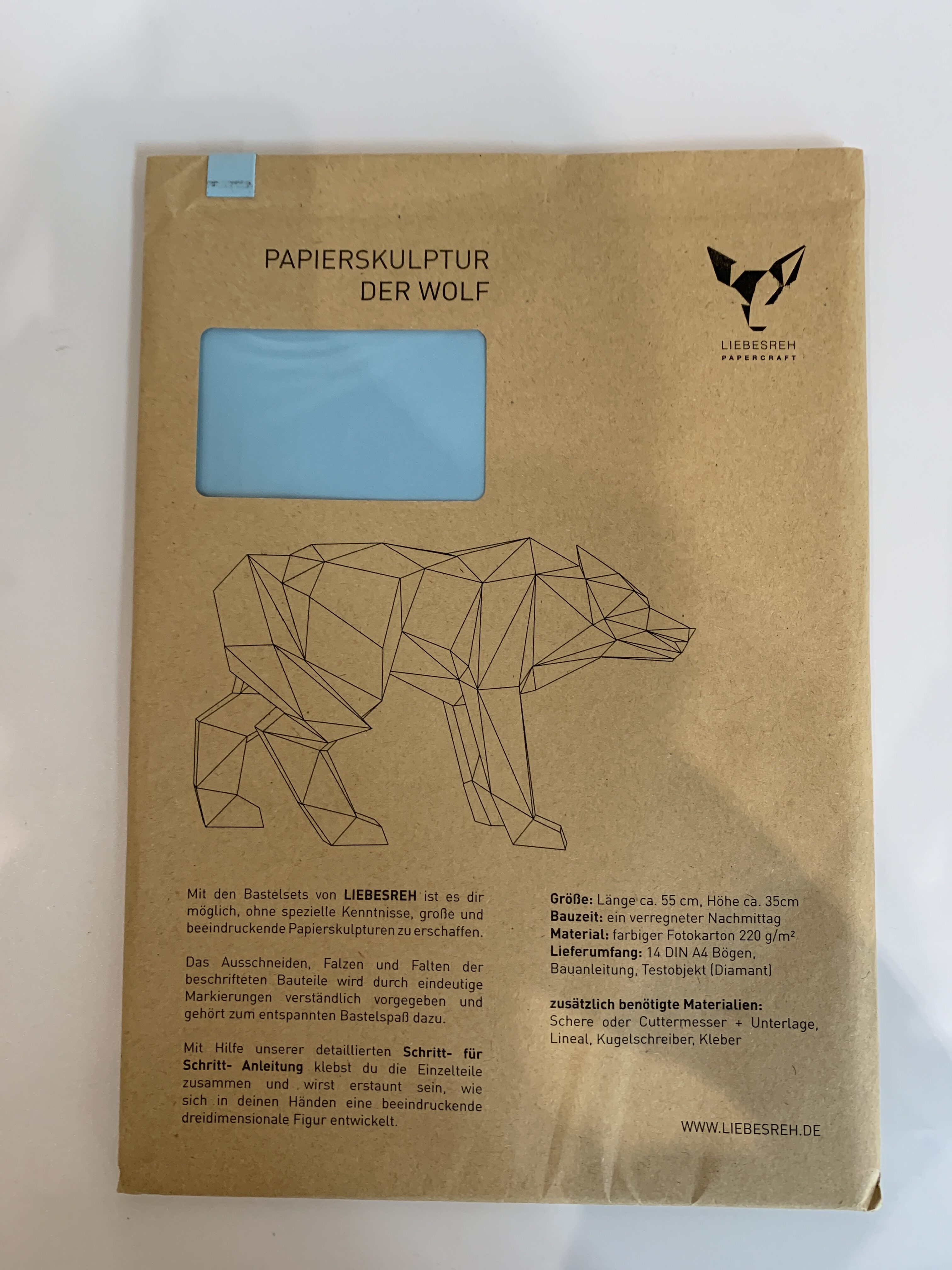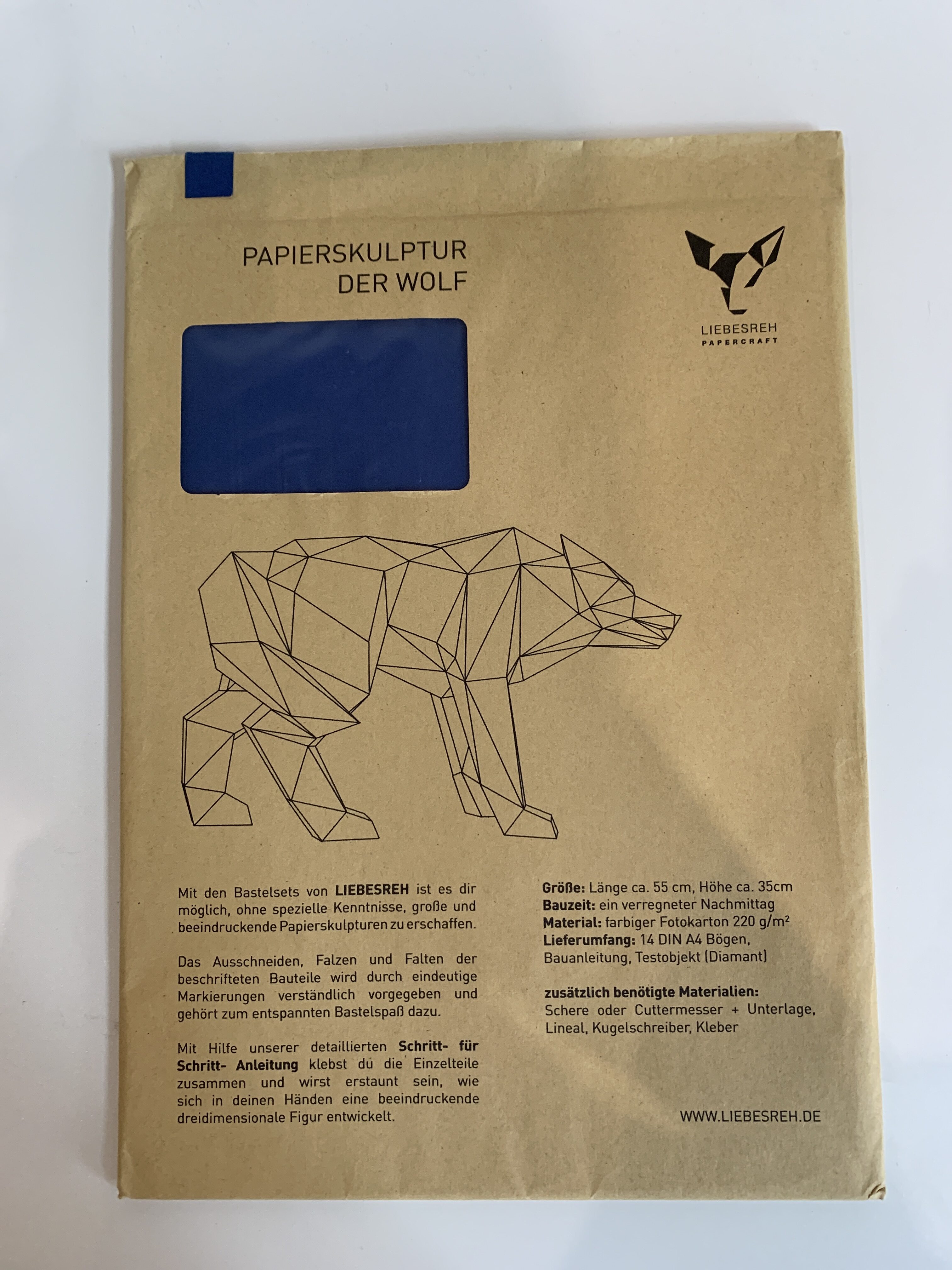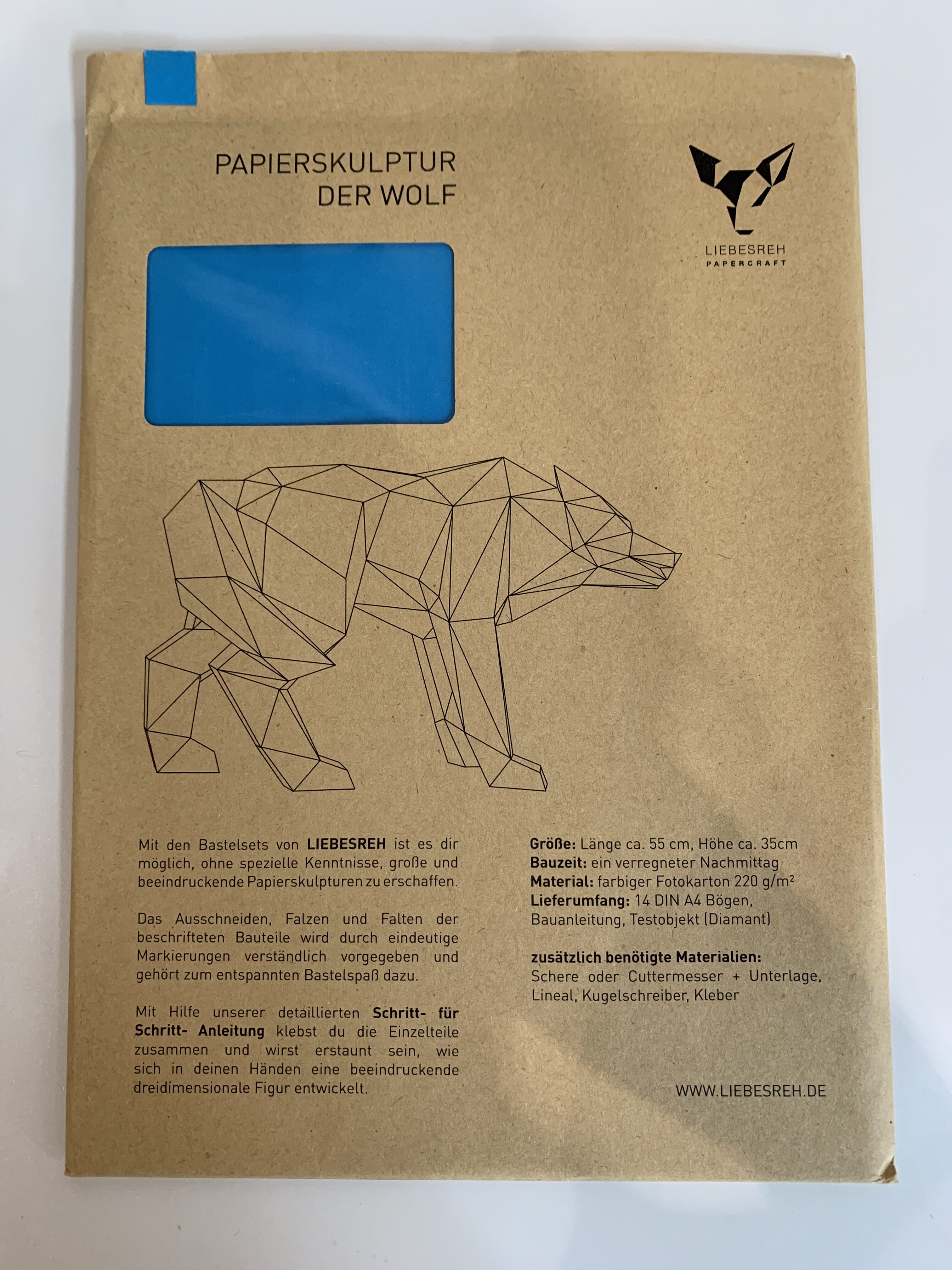 Papierskulptur Wolf blau