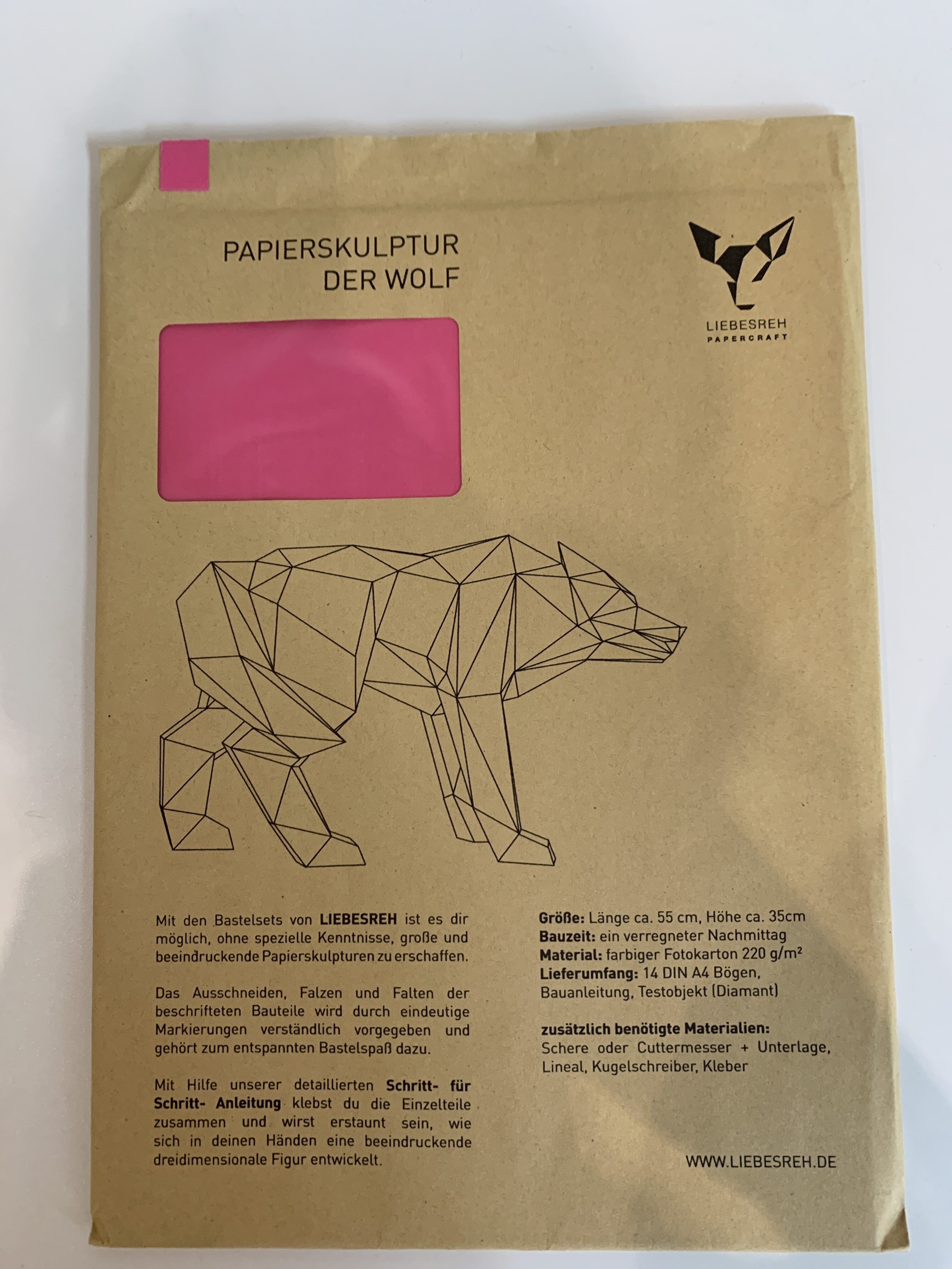 Papierskulptur Wolf pink