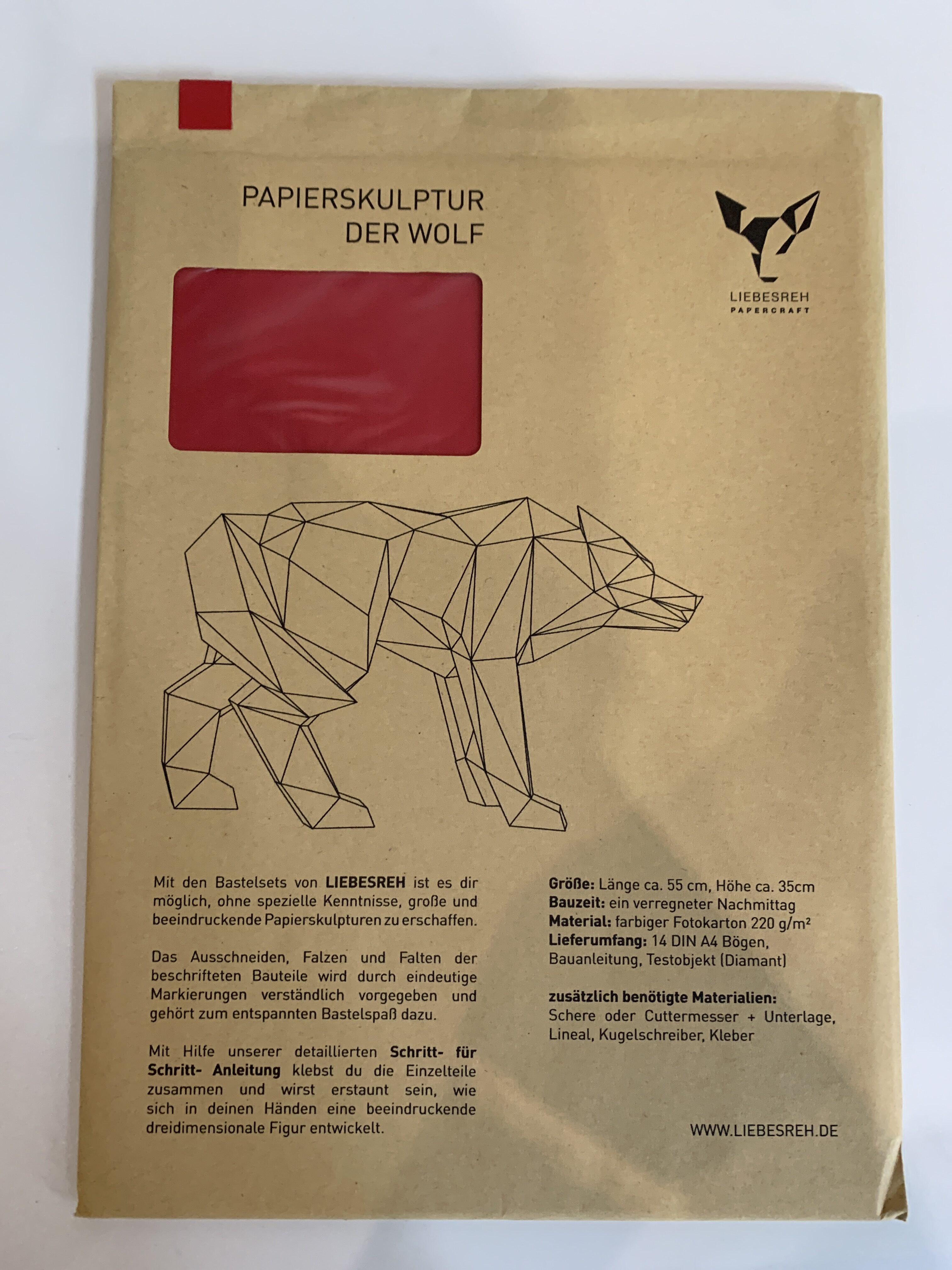 Papierskulptur Wolf rot