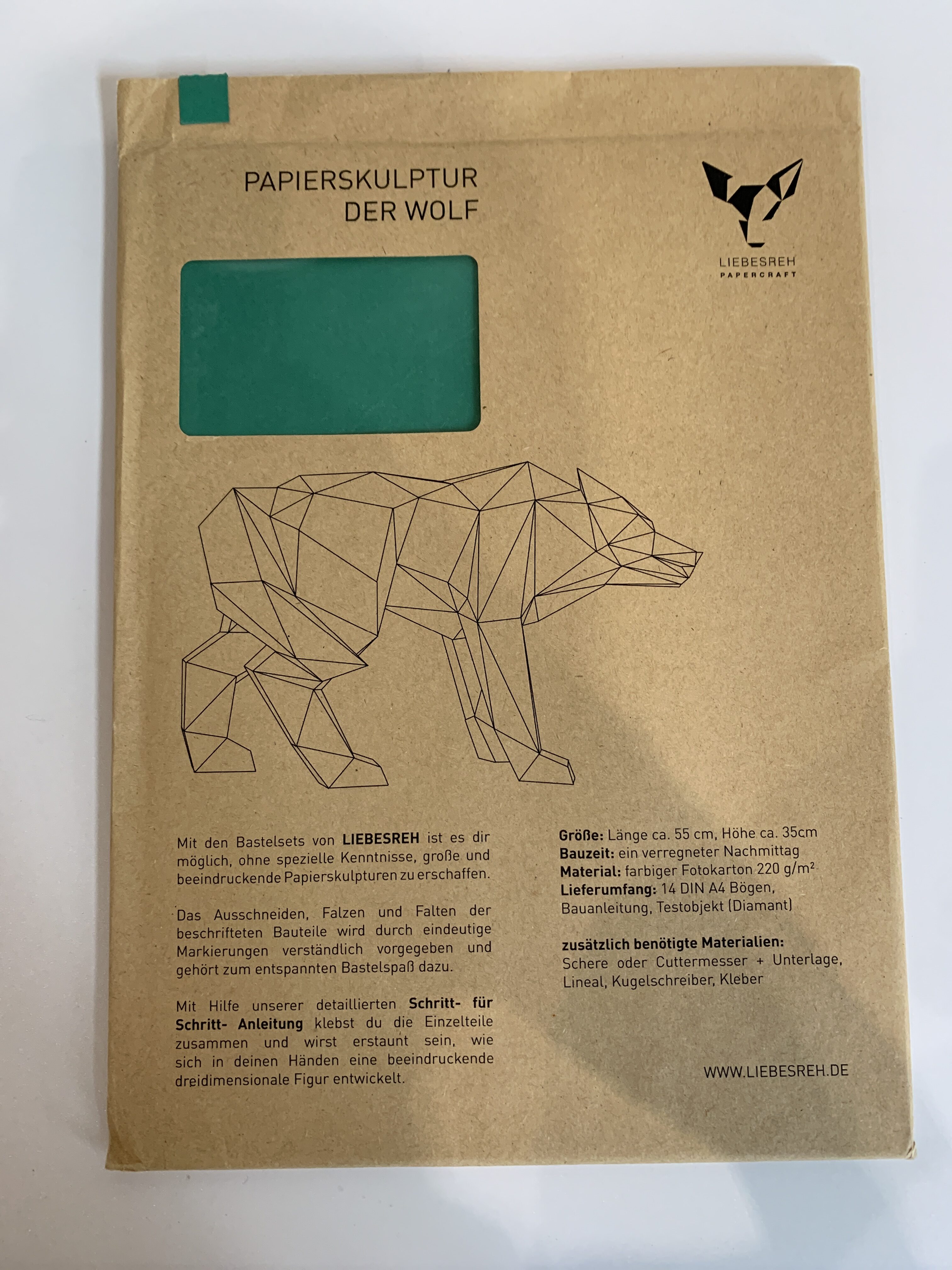 Papierskulptur Wolf dunkelgrün