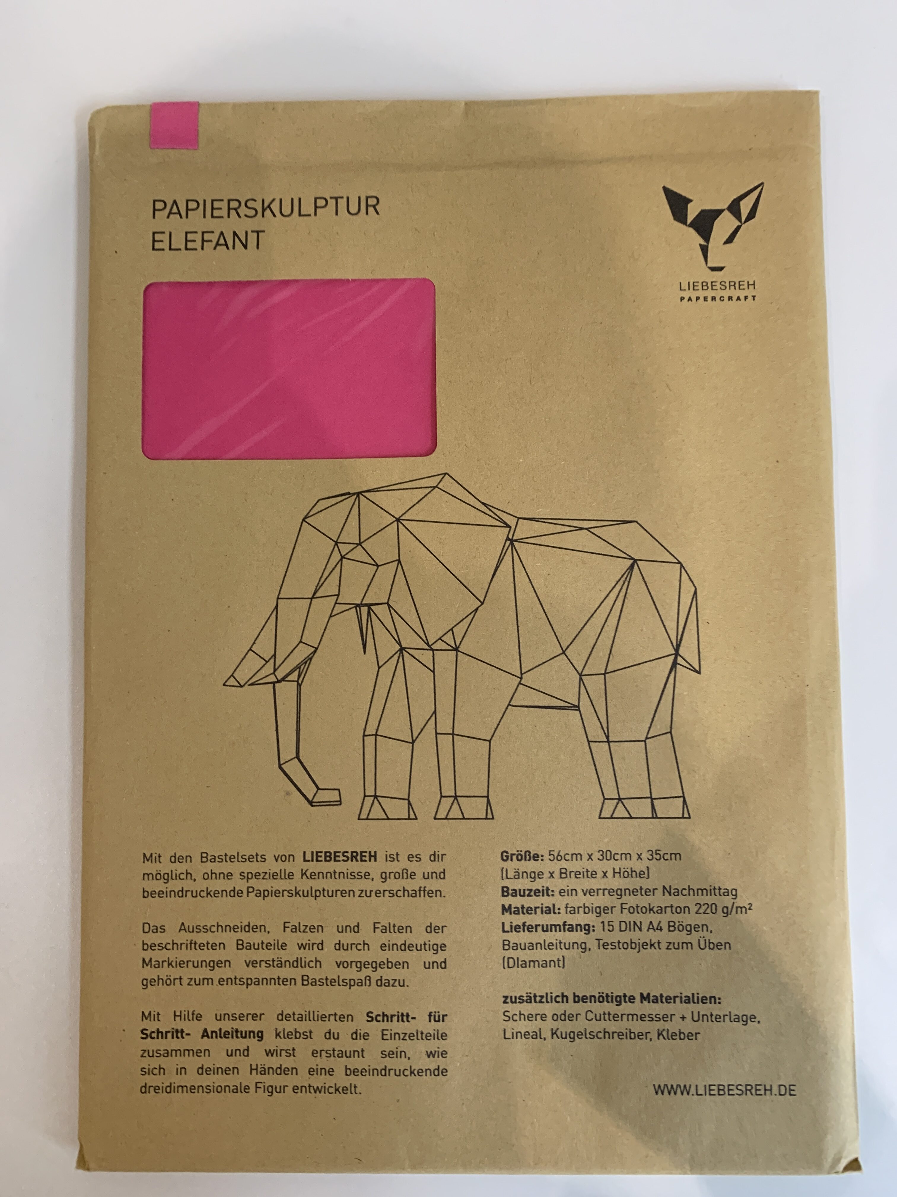 Papierskulptur Elefant pink