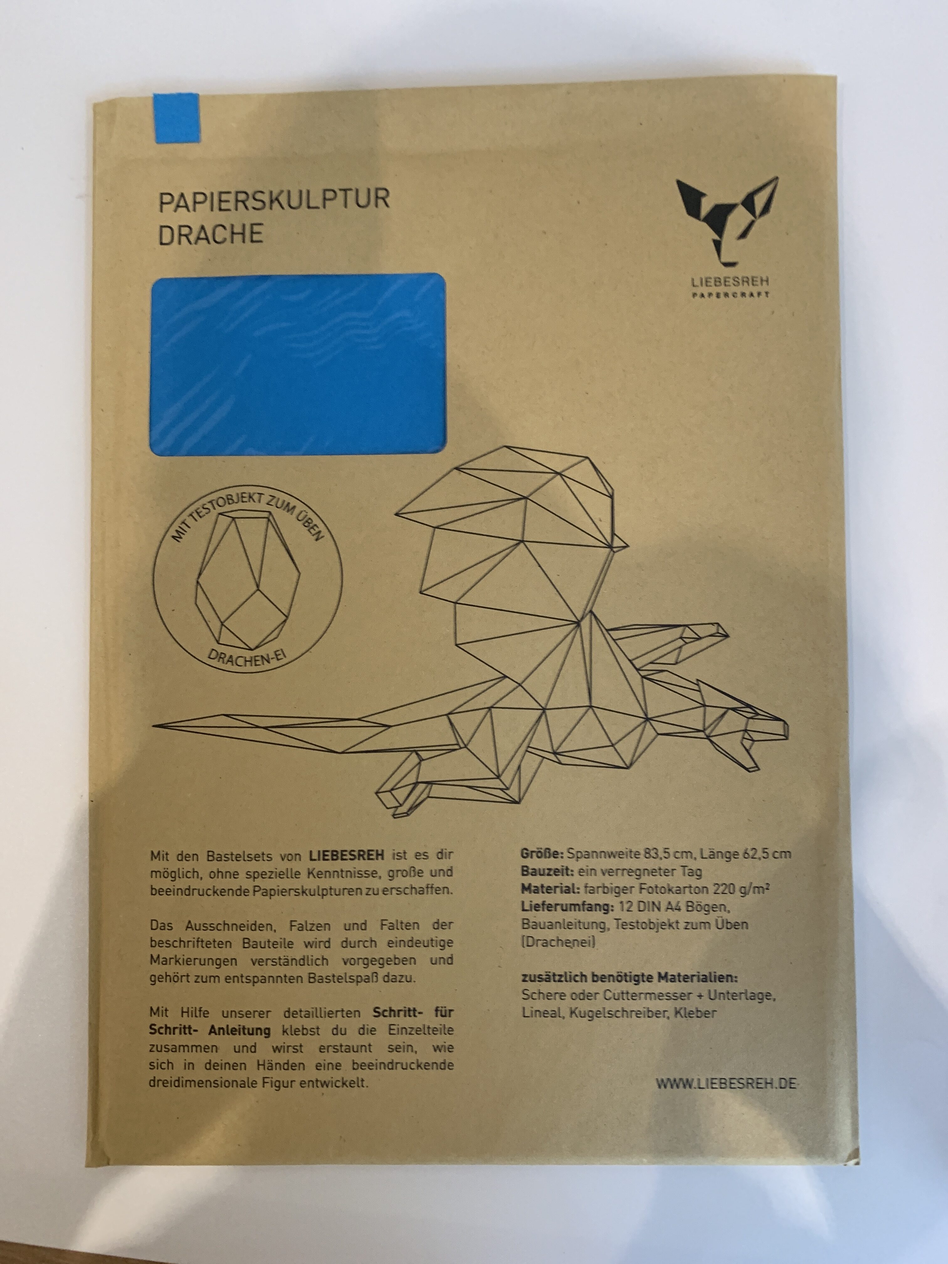 Papierskulptur Drache blau